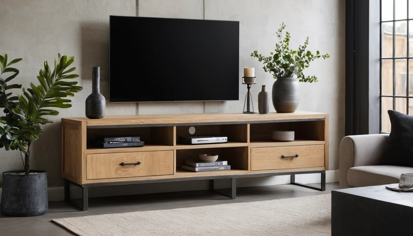 - Эстетическая привлекательность - Дубовые тумбы под ТВ привносят в интерьер нотки благородства и изысканности, идеально сочетаясь с индустриальными элементами стиля лофт.